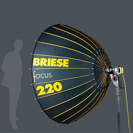 Bei focus 180 wird das Briese-Prinzip besonders deutlich. Vollständig fokussiert, erzeugt er dramatisches Licht mit mehreren Blenden Unterschied zwischen Bildmitte und -rand. Fast wie Tag und Nacht. Optimal für starke Betonungen. Diese Eigenschaft und seine Vielseitigkeit machen focus 180 zum Liebling vieler Modefotografen.